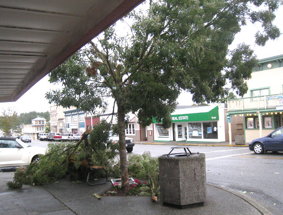 Last Saturday the tree in front of the drug store got the worst of the wind storm that accompanied all that rain...Town crews tidied up right away, but it's always sad to be missing part of the greenscape downtown. (photo by Josie)