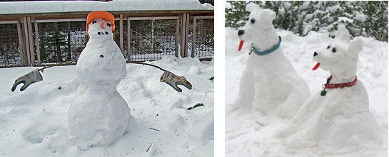 Jerry Rasmussen sent his snow-dogs from December: "This may be dated but I thought you would enjoy seeing the snow dogs that Jamie Ellsworth built back at Christmas time. I thought they were the best I have seen locally. I included a photo of my snow man as a basis for comparison."