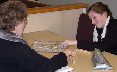 Late scores: You know how the big papers - Seattle Times, the P-I, the LA Times - sometimes can't report a score because they go to press before the game's over? Lilly and her mom Jody were playing Scrabble on the ferry so I took a picture of them. I asked Jody later who won and she said they weren't really keeping score.
