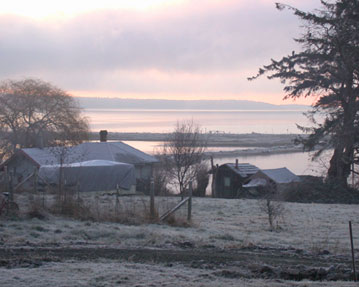 This is what it looked like looking over Griffin Bay (and the marine sanctuary in the foreground) with the sun beginning to brighten the sky above the clouds and Lopez across the way.