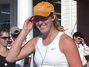 Meanwhile, the volleyball squad has Michele Mayer (left) back at the helm (she was coach back in the late '90s), and the girls are looking good, because Coach Michele works 'em pretty hard.