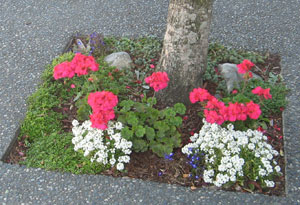 The Chamber of Commerce Downtown Forum, as part of its beautification plan, initiated a program in 2008 where businesses, organizations or individuals could “adopt” the ground around the trees along the sidewalks in Friday Harbor by planting flowers and caring for them.