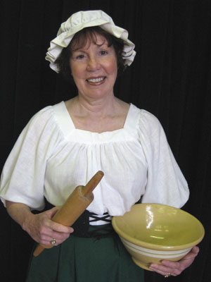 CATS member Maria Wertz models period clothing to celebrate Friday Harbor's 100th anniversary at Elegant Edibles