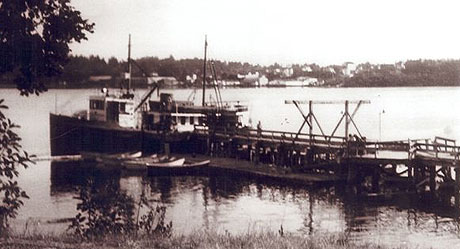 The Catalyst docked at the Labs in the 1930s, with the little village of Friday Harbor in the background.