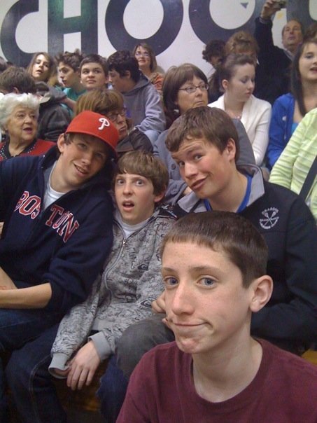 That’s (from left) Zack Reitan, Parker Satin, Jimmy Chaffee, and Ryan Cole (front) before the show got going, in a shot by Jim Cole, with me in the back taking a picture of them (his turned out better.)