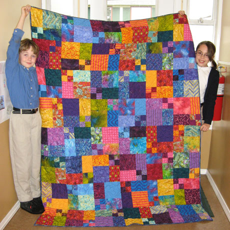I wanted to show off this beautiful quilt made by Steve Brumsickle’s 3rd and 4th grade class at Paideia Classical School. It is being raffled off at their Spring Social on April 25 at the Presbyterian Church. (You do not need to be present to win.) The students made the quilt at school under the guidance of international quilt teacher and fabulous local quilter Kitty Sorgen (she’s my mom too!)
