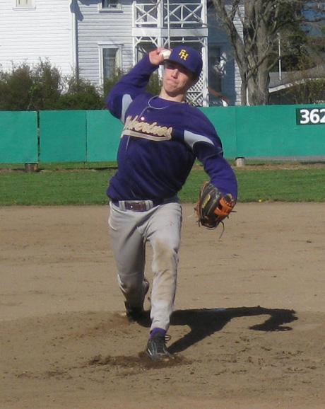 Thursday afternoon there was a power outage which darkened the electric scoreboard during the game, but Friday Harbor didn’t have a power outage as they rode a complete game effort by senior pitcher Albert Strasser (in photo) to a 14-4 win over a strong Nooksack Valley team. Albert allowed a couple of runs in the first, then settled down for the win, with plenty of run support.