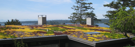 And…here’s that house that was completed this spring which has plants for a roof…it’s just across from where the Duffy House used to be, about a half mile past Jackson’s Beach out Pear Point. It’s sure colorful this time of year, don’t you think?