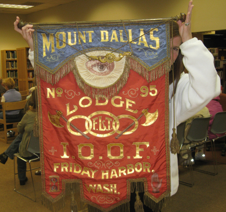 Also on display – Whale Museum director Jenny Atkinson & the Visitors’ Bureau’s Robin Jacobson (she used to work at the WM) showed off a banner they found at the Museum from an Oddfellows group that must have left it there – it was in great shape!