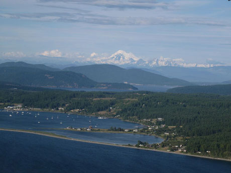 Our island home looks beautiful from the sky, too. Although, that's Lopez with Mount Baker in the background. You can tell it's Lopez Island - not as many tourists....