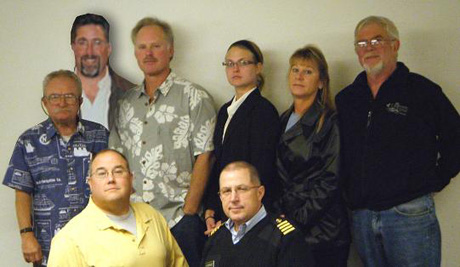 The new captains: Back row, from left: John Chessell, Chuck Payne, Greg Taylor, Lauren Sands, Caroline Armon, Capt. Terry Sanders (towing endorsement); Front row: John Boyd, Capt.Richard Rodriguez (instructor). Mot pictured: Mike MacDonald