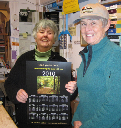 If it's a bookstore, it must be Serendipity - it was Dilys Goodman's birthday this weekend - she and Carol Jackson celebrate with their brand new San Juan Update calendar for 2010 (come by & get one - I have one for you, too!)