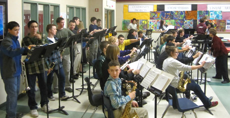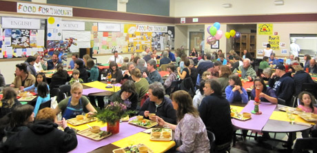 Last night it was cool to hear how good the band is sounding these days, how beautiful & compelling our artists are, and how good school food can be. The Community Dinner & Art Walk (with music by the band) made for a good evening, and provided the backdrop for the community service presentations by juniors & seniors around the school, telling what they’d been up to.