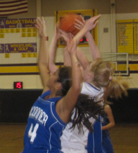 Both LaConner & Friday Harbor brought their one-loss records to the gym Friday night, and the Wolverines delivered the goods to beat the Braves 48-34 & take sole possession of the league’s top spot. FHHS played the game at full-throttle for three quarters, then cranked it up in the fourth to control the end of the game by breaking the Braves’ press, outrebounding them at the defensive end, and hustling from buzzer to buzzer.