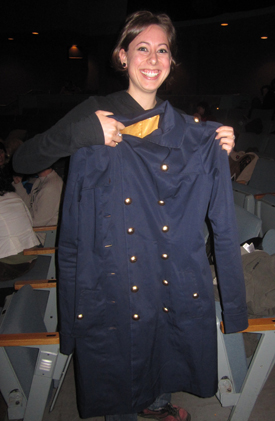 It was cool to run into Leah Altman last night – she showed me this double-breasted blue coat that she made from scratch. Pretty awesome…way to go, Leah!