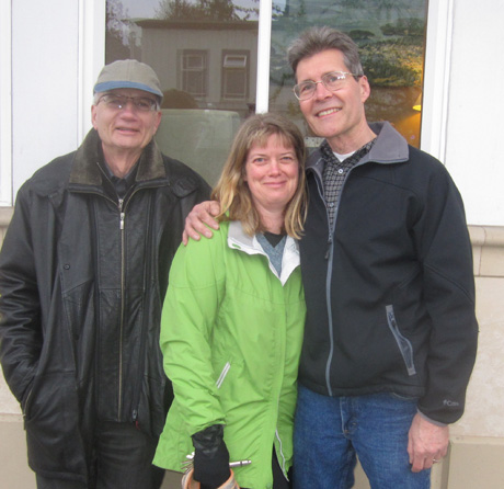 That's Jeff (left), who is in town visiting his brother Phil (he works at CenturyLink) and his wife Heidi (she's at the Library) as they all take the dog for a walk....