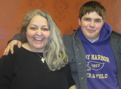 Gabe Scott (FHHS '09) drops by to say hey his mom Rhonda at Vital Elements, her store next to the Toy Box. Gabe's been working at Roche Harbor this winter & spring.