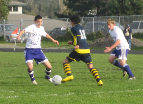 Well, the Friday Harbor boys soccer team got to finally get their season underway with Forks Friday afternoon after their first three opponents postponed matches till later in the year…and they got off on the right foot for the first three quarters of the game.